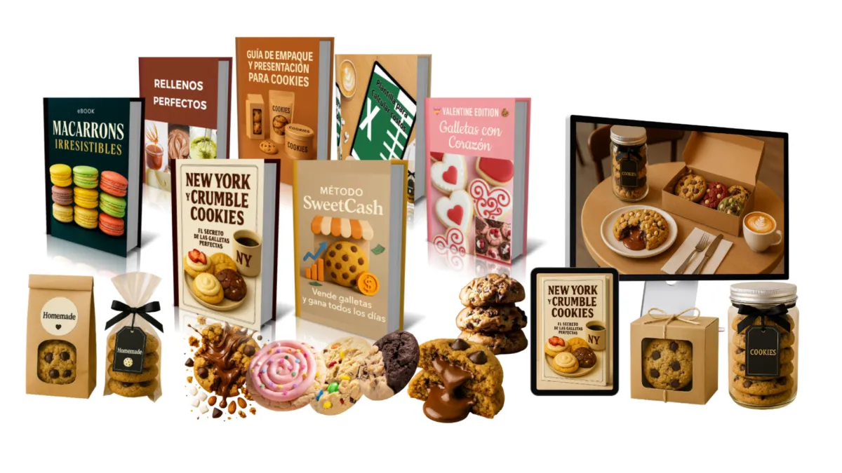 💰 Es una guía práctica paso a paso que te enseña a calcular precios, organizar tu producción, encontrar clientes y vender cookies todos los días desde casa.